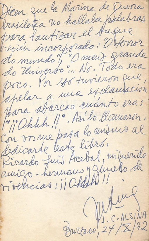 "Apodocuentos y otros retratos" en 1992, me escribió una dedicatoria que ahora