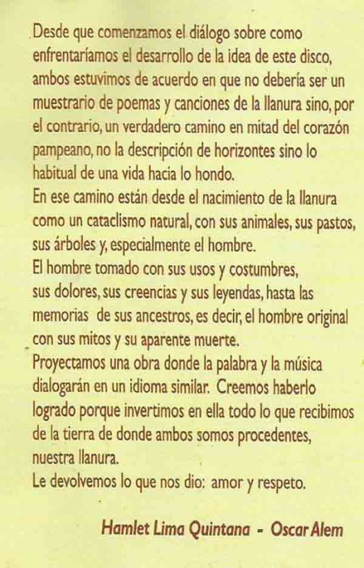 metafóricamente Atahualpa Yupanqui en una de sus milongas. Y como dice Lima