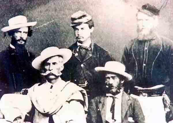El gran Felipe Varela, bigote y melena blanca. Sentado igual que él y a su izquierda Santos Guayama, uno de sus coroneles. Y Ramón Vera hoy, a sus 83, descendiente del legendario Guayama.