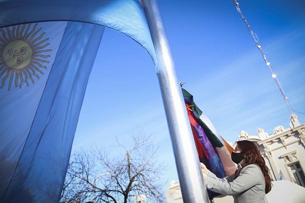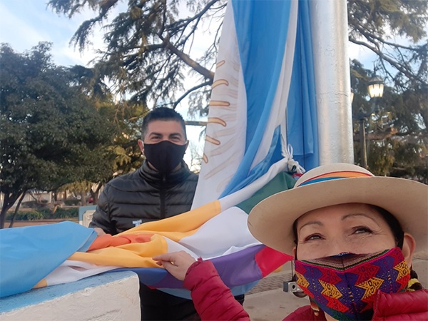 izó la bandera argentina junto a la wiphala, como símbolo de unidad,