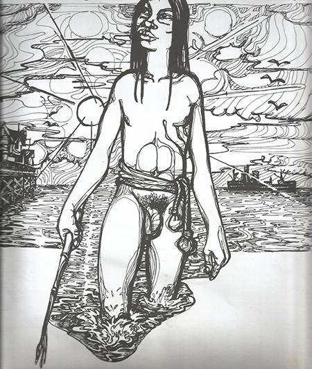 Juan Bagual, querandí de los que vencieron a Pedro de Mendoza en 1536, decide salir del Río de la Plata después de 473 años (historieta, dibujo de Sebastián Maissa)
