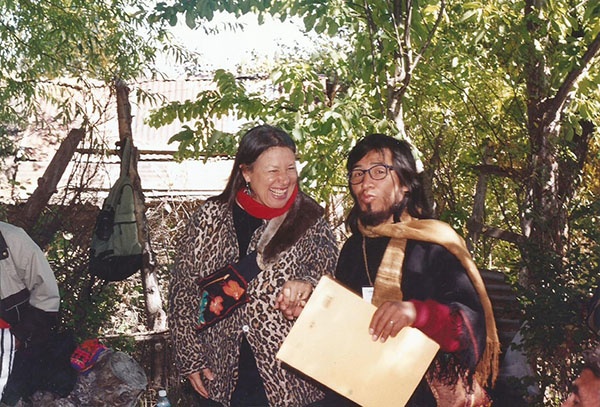Wenceslao Villanueva y una hermana delegada de aborígenes norteamericanos durante un encuentro en Malleo, Provincia de Neuquén el 27-3-05.