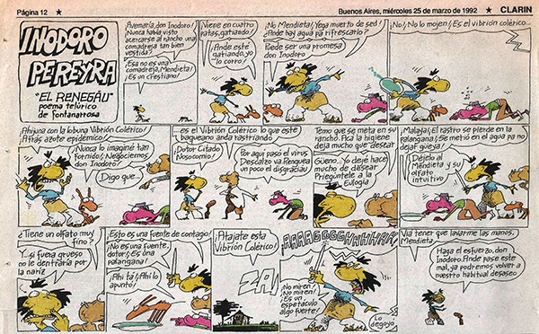 El miércoles 25 de marzo de 1992, la mitad de la página 12 del suplemento "Clarín para todos" confirmó una vez más el reconocido genio de Roberto Fontanarrosa, rosarigasino, argentino, mundial...