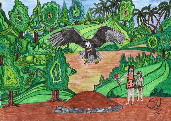 cavilaciones estaba madre e hijo cuando, de pronto un pájaro de gran tamaño, se