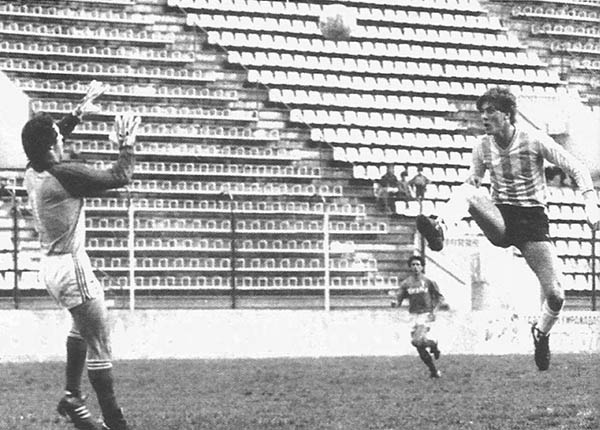 Hugo Lamadrid en Racing-Nacional de Montevideo, partido de vuelta por la final de la Recopa Sudamericana (enero 1989) (Foto y epígrafe Insert 1)