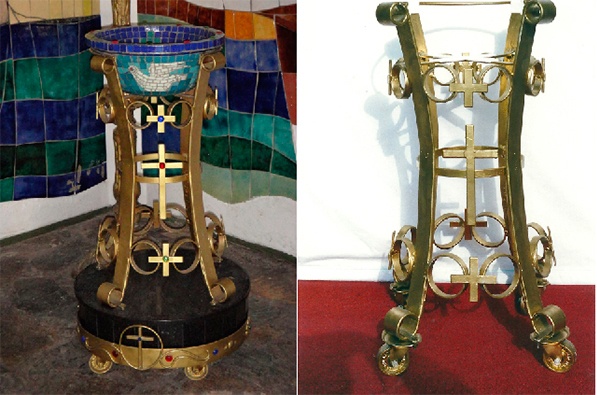 Pila Bautismal que integra la Iglesia Parroquial de Gonnet. Íntegramente realizada por Elías en su taller hogareño.