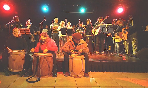 sonorización) lleno de instrumentistas, todos vecinos de Hurlingham y de la
