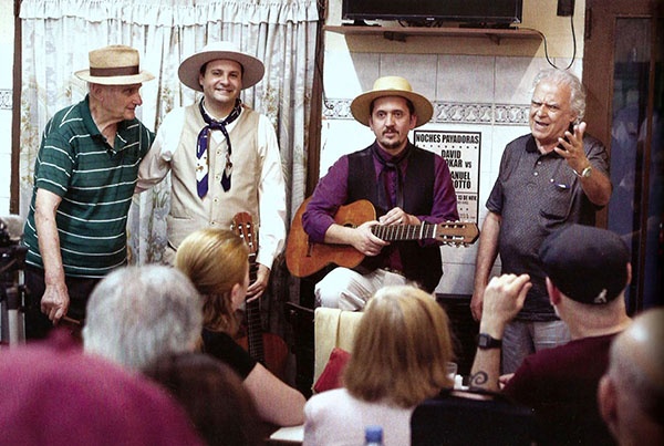 Aldo Crubelier, Emanuel Gabotto, David Tokar y José Curbelo: Noche payadora en San Telmo (Ciudad de Buenos Aires), barrio natal de Gabino Ezeiza.