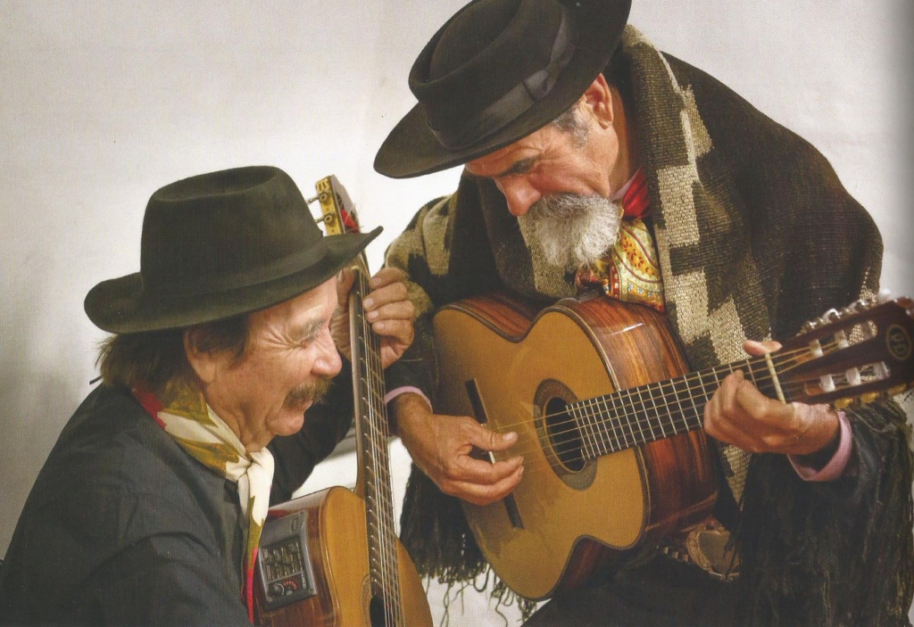Dos expresiones de la polifacética personalidad de Pablo Solo Diaz (payador, artista plástico, docente, actor y titiritero): Dibujando en su estudio de Las Flores (Provincia de Buenos Aires) e improvisando con el payador patagónico Saúl Huenchul.