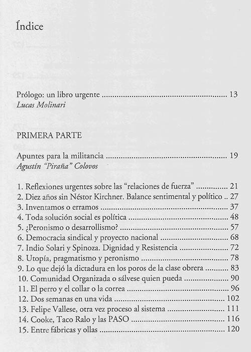 En su prólogo, titulado "Un libro urgente", Lucas Molinari anota: "Hoy