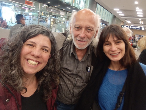 Dos integrantes del Ministerio de Cultura de la Nación: Mari Russo y Soledad Amarilla. Y el presentador de escenario y autor de esta nota Ricardo Luis Acebal.