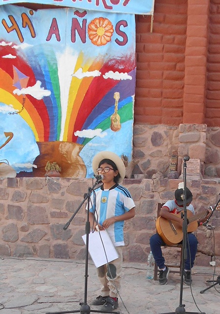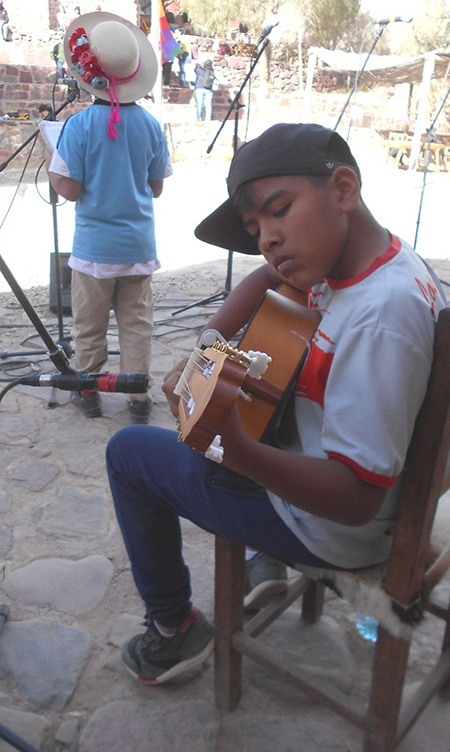 La salteñita bagualera y zambera Juanita Liquin, con el acompañamiento en guitarra de su hermano Yatel.
