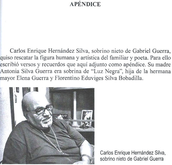 tío abuelo. Hermano de mi abuela materna, doña Elena Guerra de Silva. Hijo de
