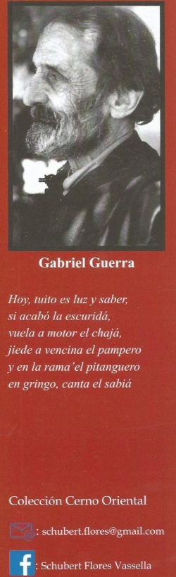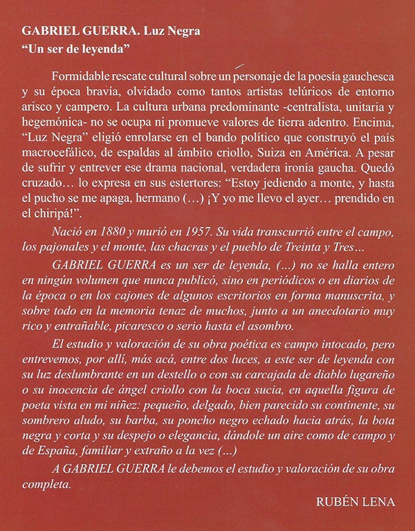 "Presentación de Gabriel Guerra" (pag. 15) por Rubén Lena. Lena: Maestro, poeta y músico. Nació en Treinta y Tres