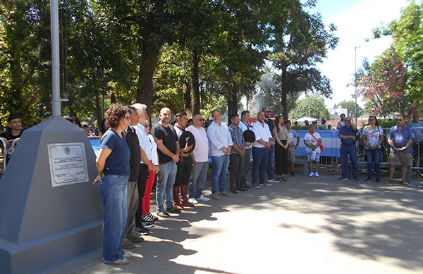 A pleno sol, quienes coordinaron el encuentro entonaron nuestro Himno Nacional junto con el muy numeroso público que participó. Entre esos coordinadores, se destacan el Intendente Municipal Mariano Cascallares, su Secretario de Cultura Juan Manuel Pereyra Benitez y el integrante del equipo de Cultura Ulises Cejas.