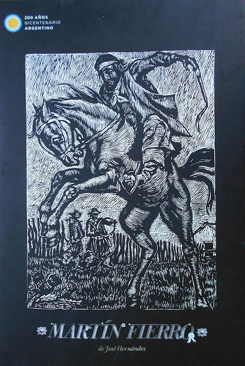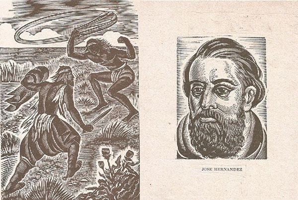 Martín Fierro a muerte con un pampa: pelea entre hermanos y José Hernández (xilografías de Alberto Nicasio)