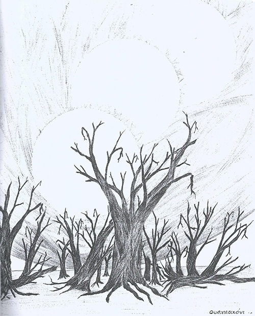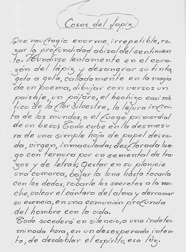 para sus originales (Bic negra, trazo fino), aunque en alguno de sus poemas