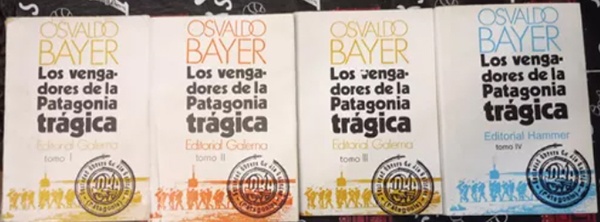 Los cuatro tomos que componen "Los vengadores de la Patagonia trágica". En el presente año 2025 (según la web) se pueden conseguir (usados) pagando 130.000 pesos al contado, o en seis cuotas mensuales de 28.805,83.