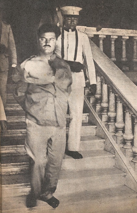 "Cara a cara con el enemigo", así tituló esta foto un diario anarquista norteamericano. Aquí va Severino Di Giovanni, desgarrado y en medias rumbo al tribunal que lo condenará a muerte.