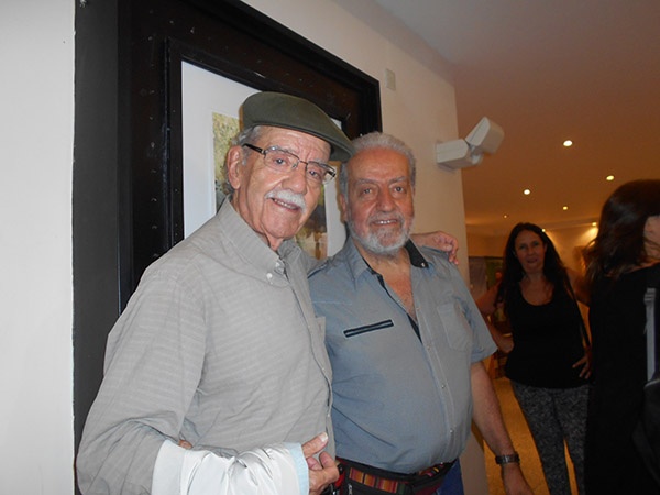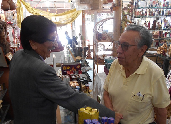 El alfarero y escultor Dionisio Díaz (izquierda), recibiendo a Héctor David Gatica.