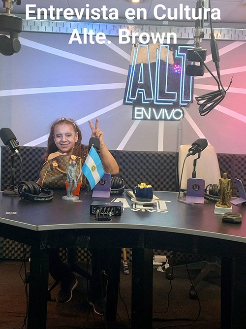 Grabación en ALT (Cultura de Almirante Brown) el 4 de diciembre de 2025 para el programa "Identidad", conducido y producido por Ricardo Luis Acebal. Fue la última vez que un medio periodístico la entrevistó. Si desea ver ese programa haga click a la derecha y arriba de esta página.