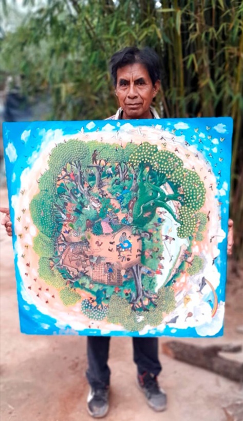 La exposición reunía obras de artistas wichí, cuyo origen se remonta a una experiencia singular: un pintor enseñó a pintar a una mujer wichí en Misión Chaqueña, quien desarrolló con el tiempo un estilo propio, profundamente ligado a la vida cotidiana y a la cosmovisión de su comunidad. Con los años, su familia y otros integrantes continuaron esa práctica artística, que hoy constituye su principal y, en muchos casos, única fuente de ingresos.