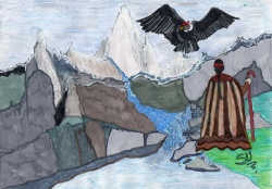 y por último, puso sobre las cumbres nevadas como colosal vigía al Cóndor protector de los Andes.