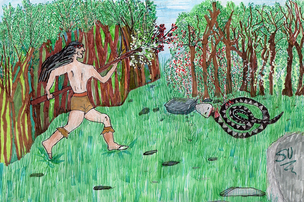 de arrayanes, se les presentó, de repente una serpiente que caminaba erguida,