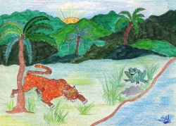 …que el tigre, sabiéndose poderoso era bastante engrupido y vanidoso, siempre andaba por ahí alardeando de su estampa y gallardía, pero de lo que más presumía era de su fortaleza y poder.